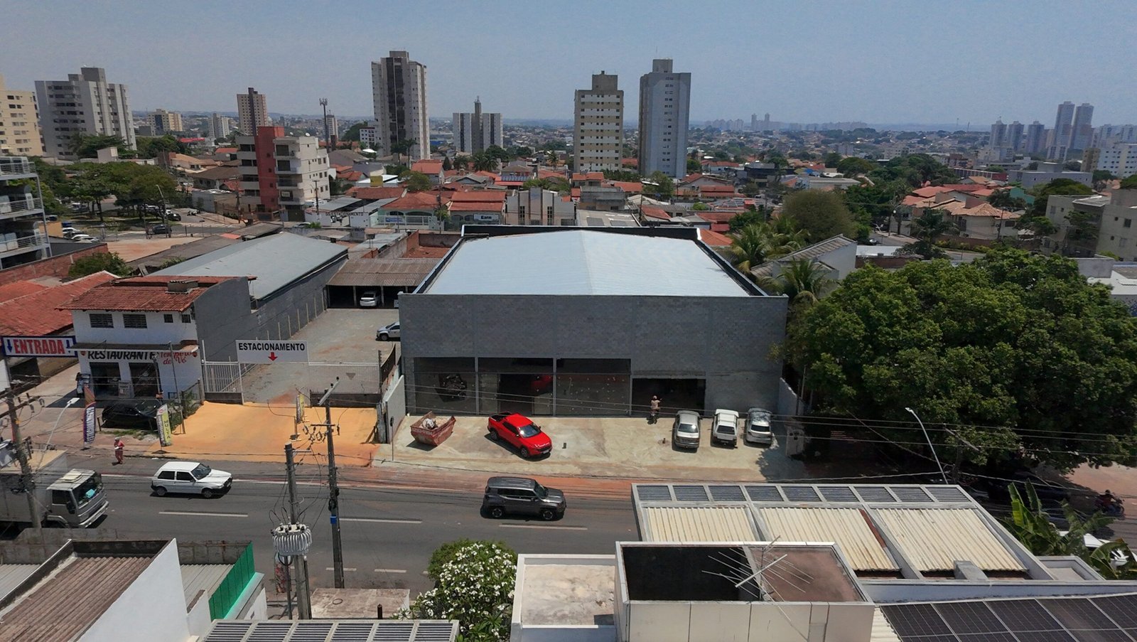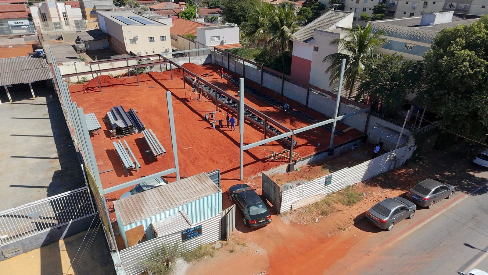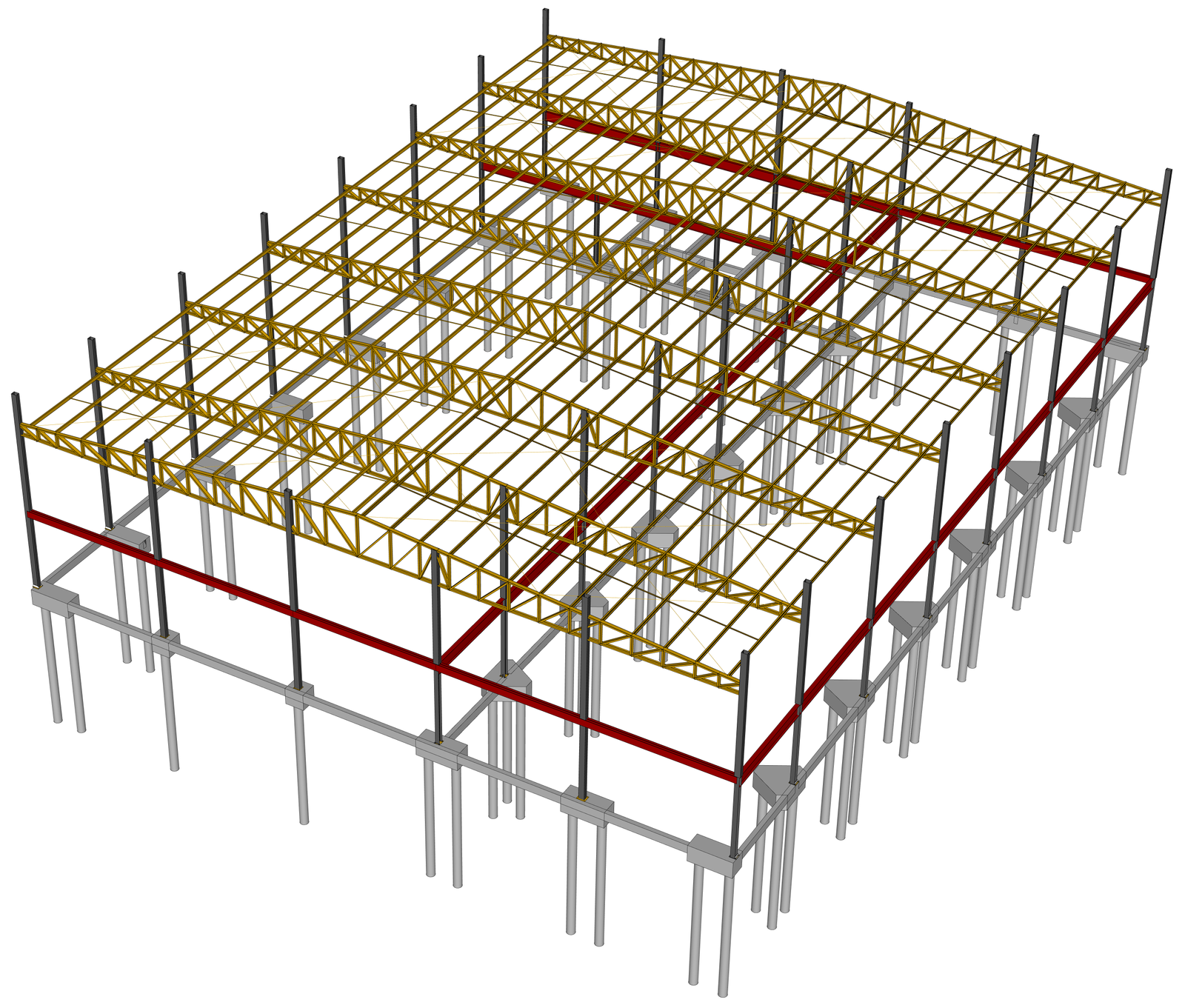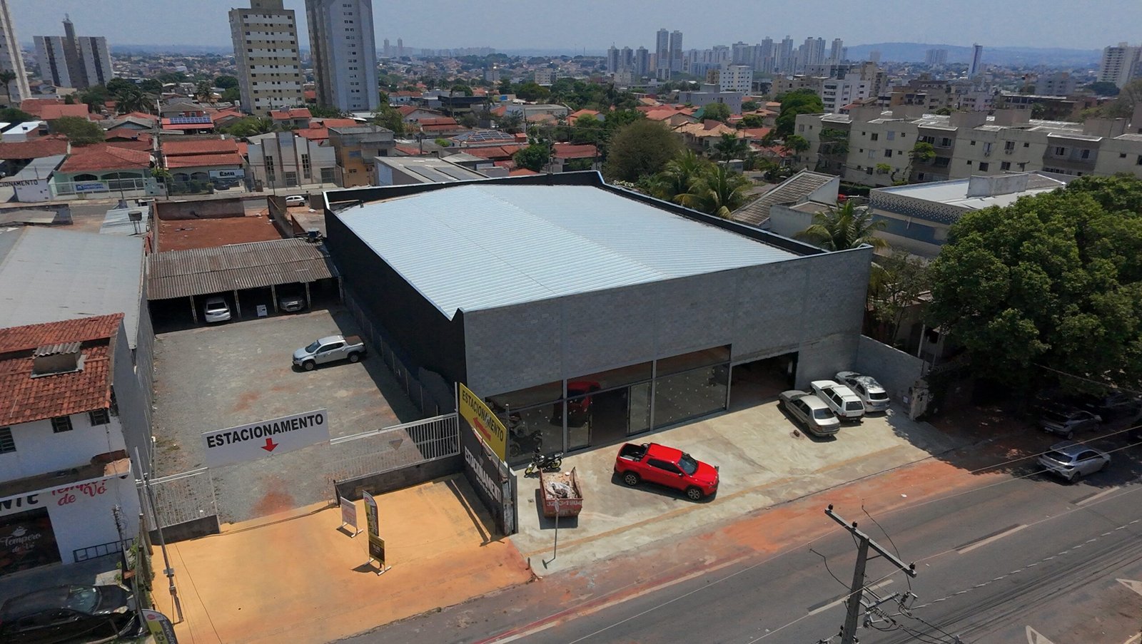 Para atender as necessidades de utilização desta academia com grandes cargas e grandes vãos, nossa concepção estrutural aliou estrutura metálica e laje com vigotas protendidas. Unindo o que cada material proporciona de melhor no seu desempenho, utilizamos pilares e vigas em perfis metálicos laminados para sustentar a laje protendida com mais de 10 metros de vão livre. Assim, garantimos um estacionamento coberto em laje, sem pilares intermediários, e ainda, atendemos o objetivo de uso de academia sobre a laje.
